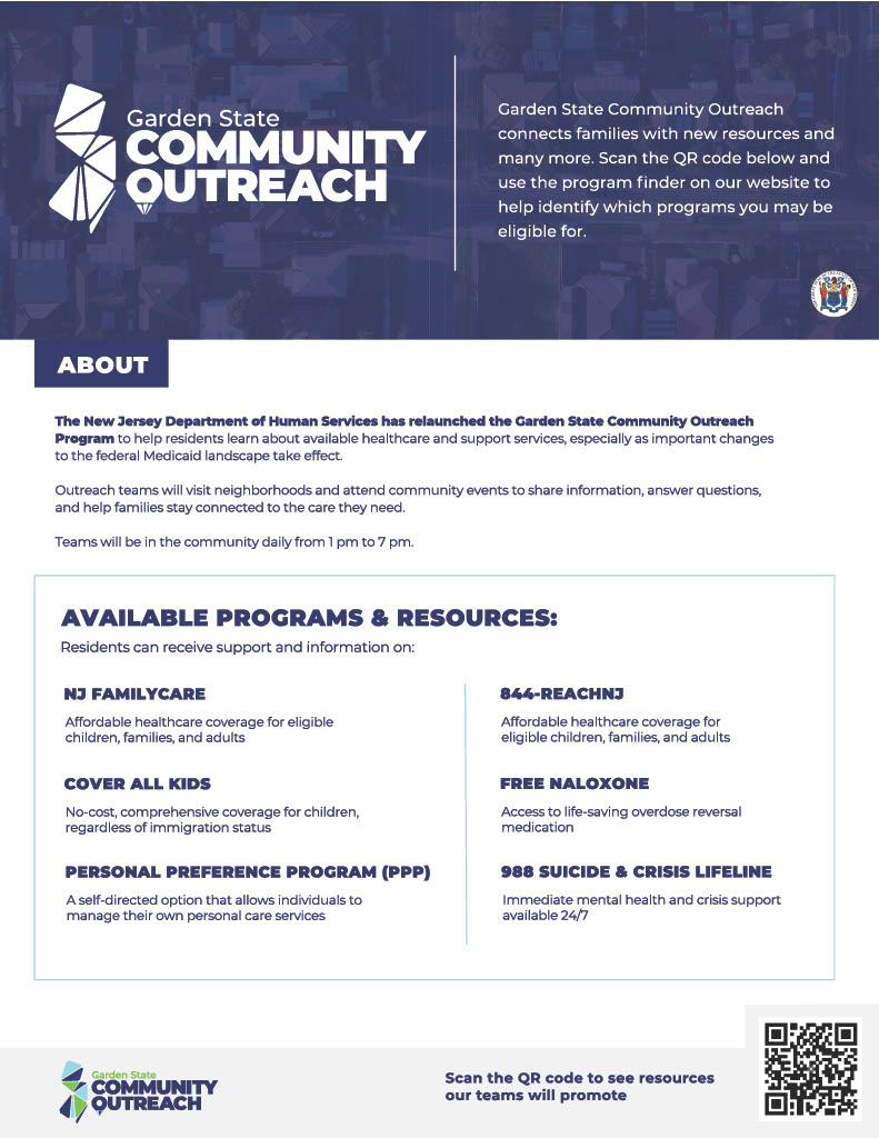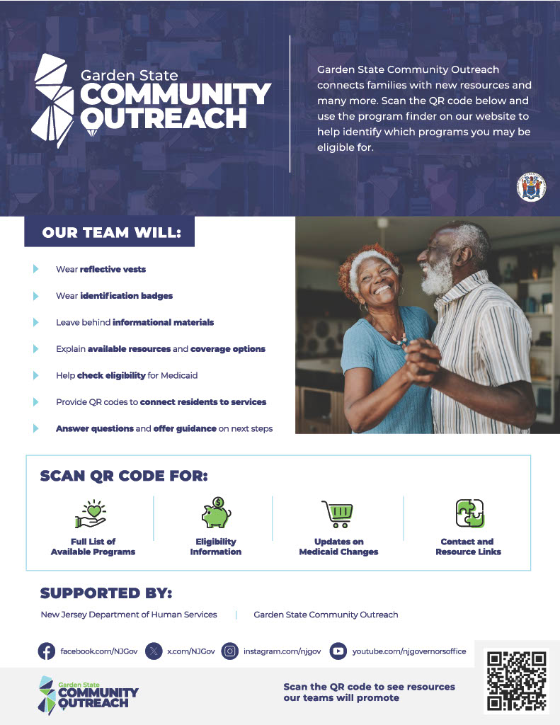 Garden State Community Outreach, created by Governor Murphy and the Legislature, connects New Jersey residents to cost-saving and life-changing programs. Use the program finder to help identify which programs you may be eligible for.